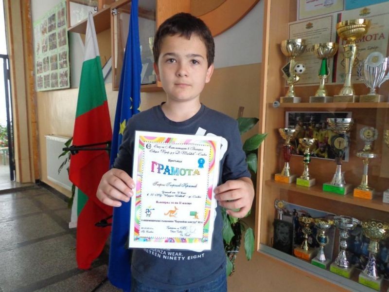 За пореден път достойно представяне на Георги Георгиев Кръстев от 5а клас. На областния кръг от международното математическо състезание „Европейско Кенгуру” 2014 г. той се класира на II място с 90 точки.