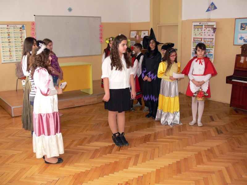 Костюмирани като герои от български, немски и френски приказки, група петокласници от СОУ „Й. Йовков” задаваха приказни загадки в рими и в проза на любознателните деца. Пред тях „оживяха” Красавицата и Звярът, Пепеляшка и Спящата красавица, баба Яга, седемте козлета, остроумният Хитър Петър, Златната ябълка, Червената шапчица и Вълкът, Пипи – дългото чорапче...