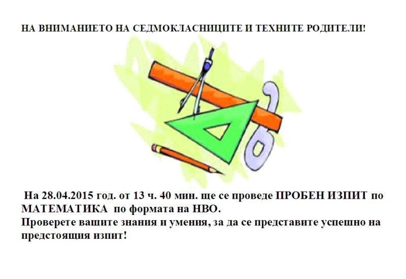 НА ВНИМАНИЕТО НА СЕДМОКЛАСНИЦИТЕ И ТЕХНИТЕ РОДИТЕЛИ!