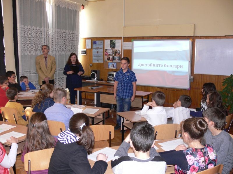 Днес в СОУ "Йордан Йовков" - Сливен бе проведено открито занятие в заниманията по интереси, направление "Наука" на тема "Достойните българи". В първата част възпитателите Пламена Кирова и Атанас Сакеларов разкриха пред децата най-ярките и достойни за уважение личности от богатата история на България.