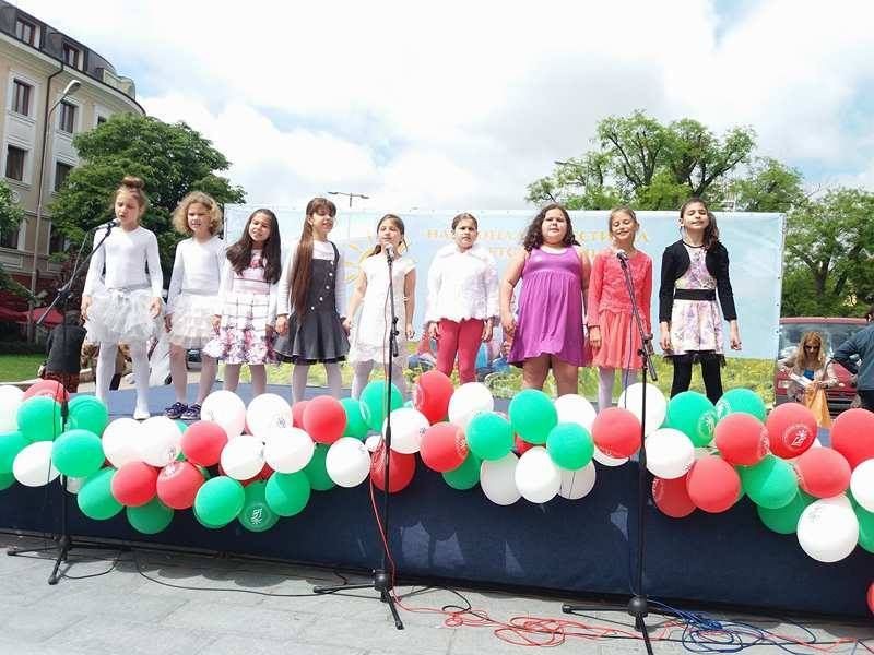 Вокална група "Мечта" при СУ "Йордан Йовков" - Сливен, допринесе за празничното настроение, участвайки в концертите на открито, по случай ХIX Национален фестивал на детската книга.