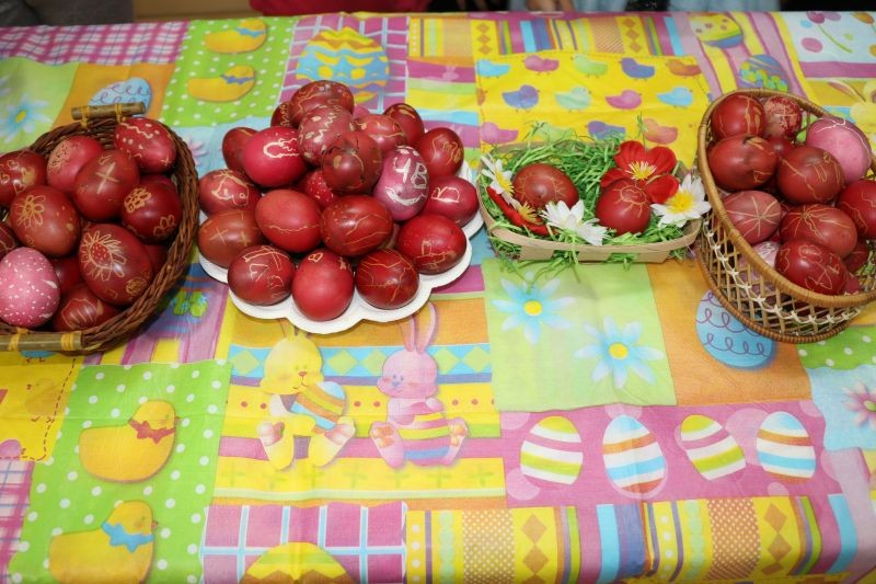 Госпожа Славова им разказа и показа различни техники, с които са се шарели яйцата за Великден. Една от най-старите, познати в България, е восъчната техника, с която са се рисували яйца.