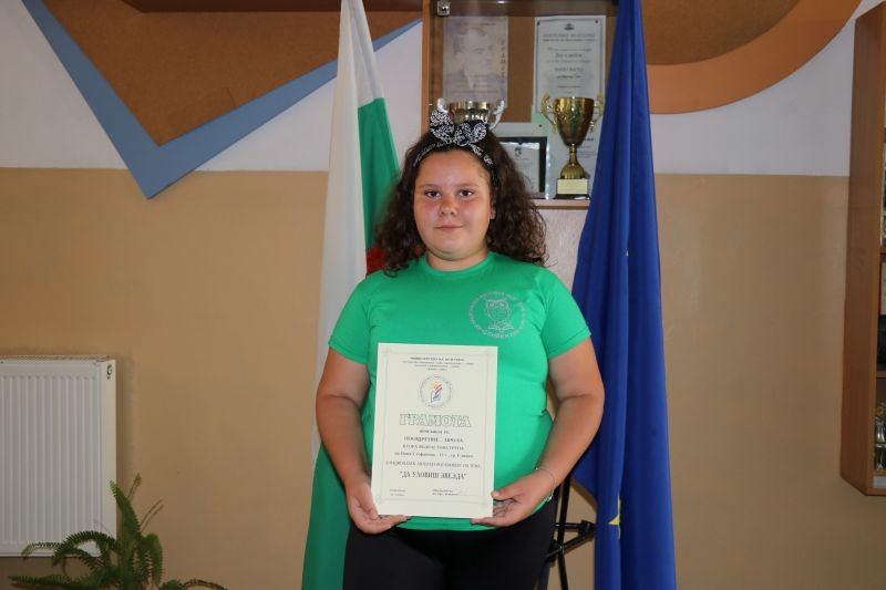 За участие в националния литературен конкурс на тема „Да уловиш звезда“, петокласничката Цани Стефанова получи грамота за поощрение във втора възрастова група за разказа си. В него героите с голямо въображение и приключенски дух успяват да вземат звезда, която сега грее от върха на паметник, за да ни напомня, че сме славен народ.