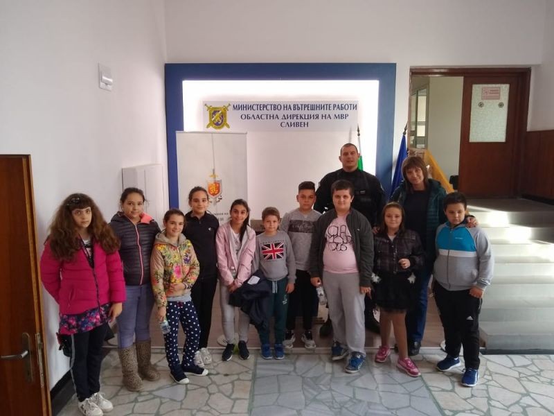 Във връзка с предстоящия празник на Полицията, четвъртокласниците от СУ „Йордан Йовков“ посетиха Областна дирекция на МВР – Сливен. Мероприятието започна с демонстрация на полицейски автомобили, а след това продължи с разглеждане на сградата на Районното управление и запознаване с работата на отделните структурни звена и завърши с демонстрация на екипировка и снаряжения на Специализираното тактическо звено за бързи действия.