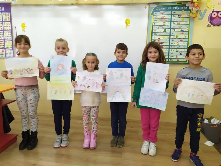По повод патронния празник на Средно училище "Йордан Йовков" - Сливен, учениците от първи "А" клас нарисуваха рисунки на тема "Моето щастливо детство". Първокласниците нарисуваха своята представа за щастливо детство: усмихнати приятели, много игри и забавления.