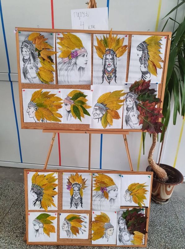 Учениците от група за ЦОУД 4. клас съчетаха багрите на есента с въображение и емоции и украсиха богато портретите на индианските вождове и техните племена.