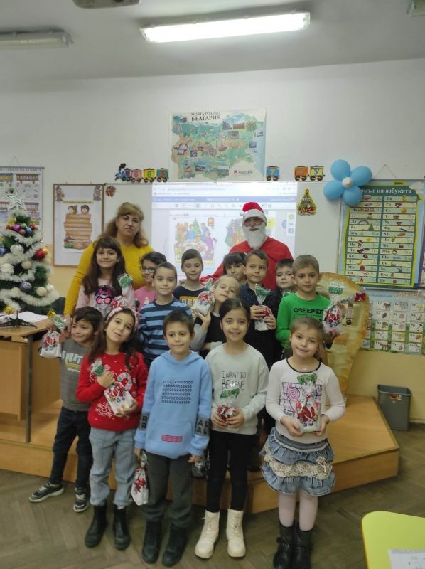 Белобрадият старец посети учениците от 1. до 4. клас. А те го посрещнаха с много топлина и приятни емоции, светлини, гирлянди и коледни украси, вещаейки доброта, хармония, здраве, добронамереност, мъдрост и смирение.