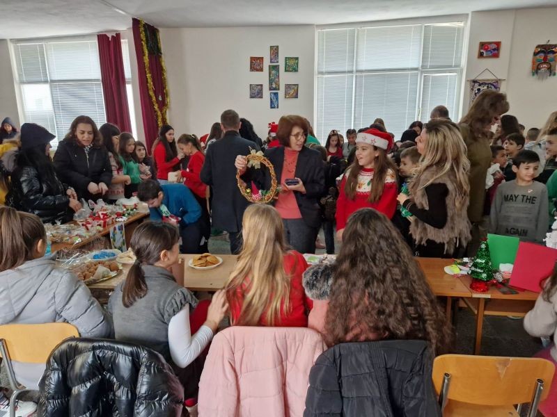 Зала "Слънце" бе отрупана с коледни лакомства, картички и коледни украси, които привличаха вниманието на малки и големи.