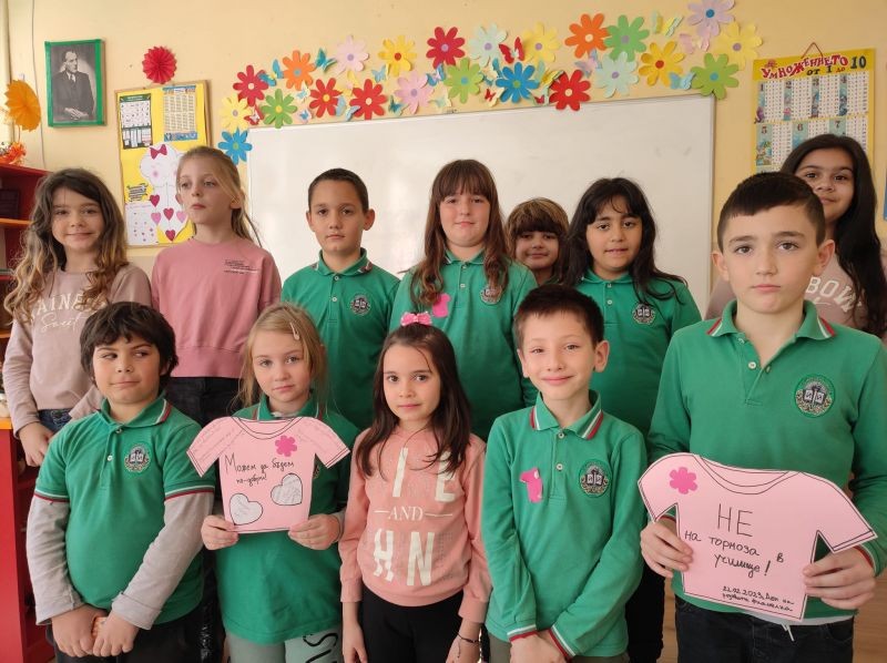 В Деня на розовата фланелка децата от група за ЦОУД – 2. клас казаха „Не на тормоза в училище!“. Те призоваха всички за толерантност в училищните взаимоотношения, за нетърпимост към проявата на тормоз и за съпричастност към неговите жертви!