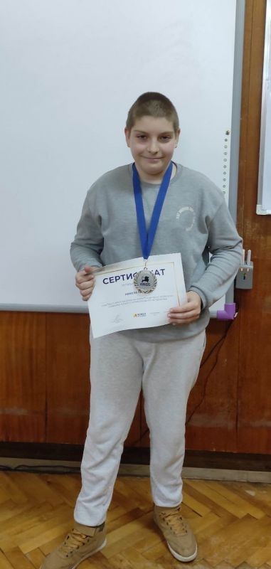 Никола Петков от 5"б" клас се представи достойно в Кралската лига на Международната дистанционна олимпиада "КИНГС". Той показа отлични резултати по Математика и бе удостоен със сертификат и сребърен медал.
