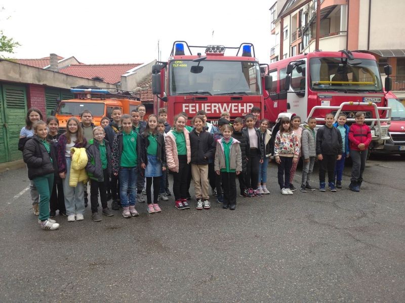 Днес учениците от 4. ,,А" и 4. ,,Б" клас на СУ „Йордан Йовков“ присъстваха на учебно занятие в Районна служба пожарна безопасност и защита на населението – гр. Сливен. Огромно вълнение предизвика пресъздадената реална ситуация на сигнал за пожар. Старши инспектор Апостол Апостолов разказа случки от живота на пожарникарите и обясни как трябва да се реагира в случай на пожар.