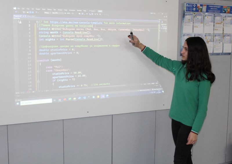 Инж. Димитър Желев изнесе открит урок с ученици от 9. клас, паралелка "Приложен програмист" по предмета Увод в програмирането със C# на тема "Вложени условни конструкции".