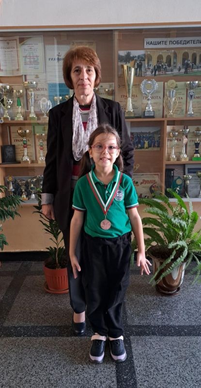 Поздравления за нашата първокласничка - Даян Николова, която спечели бронзов медал във вида смесена двойка на провелото се контролно състезание по акробатика през почивните дни в зала "Младост".