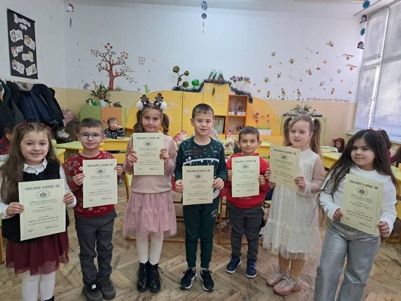 Ученици от СУ "Йордан Йовков" бяха наградени за своето участие в конкурса за коледна картичка и оригинално коледно пожелание "Коледна магия“ – 2024, организиран от Регионална библиотека "Сава Доброплодни" - Сливен.