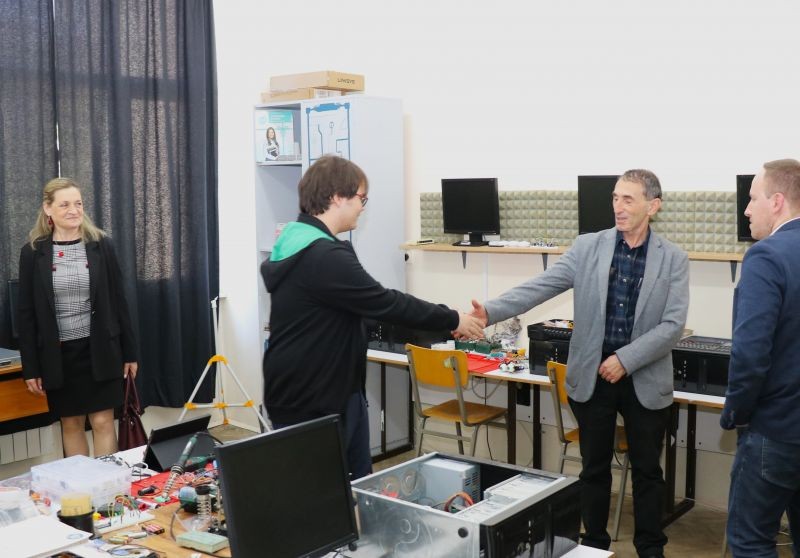 По повод откриването на нов компютърен кабинет в СУ „Йордан Йовков“ пред гостите на събитието бяха представени постиженията на нашите ученици, под ръководството на инж. Димитър Желев.