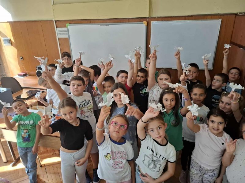 Третокласниците слушаха внимателно, участваха активно и с желание се включиха в творческата част на занятието. За много от тях това беше първият досег с темата за глобалния мир и начините, по които всеки от нас – дори и най-малките – могат да допринесат за него. Един от най-вълнуващите моменти бе, когато децата държаха своите гълъбчета високо, с гордост и усмивки – като истински посланици на мира.