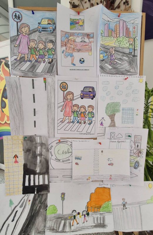 На 18 септември – Ден без загинали на пътя, училището превърна фоайето си в изложбена зала. Десетки детски рисунки, посветени на пътната безопасност, изпълниха пространството с цветове и послания. Във всяка рисунка децата изразиха своите мечти за свят без катастрофи, в който вниманието, отговорността и взаимното уважение спасяват животи.