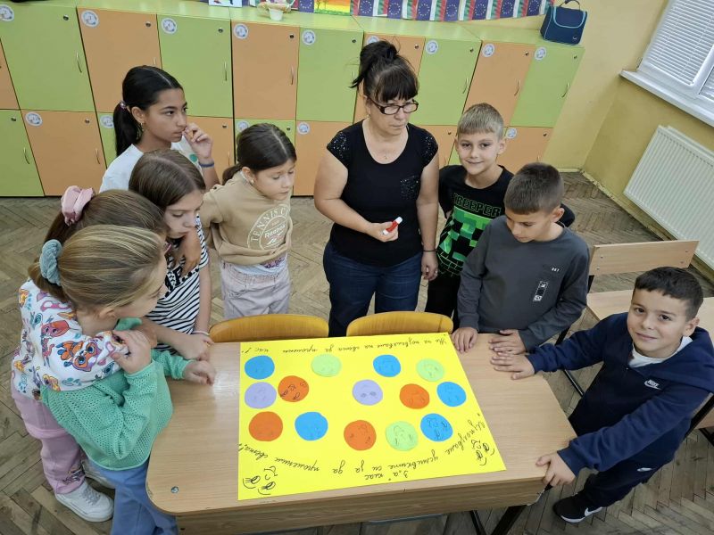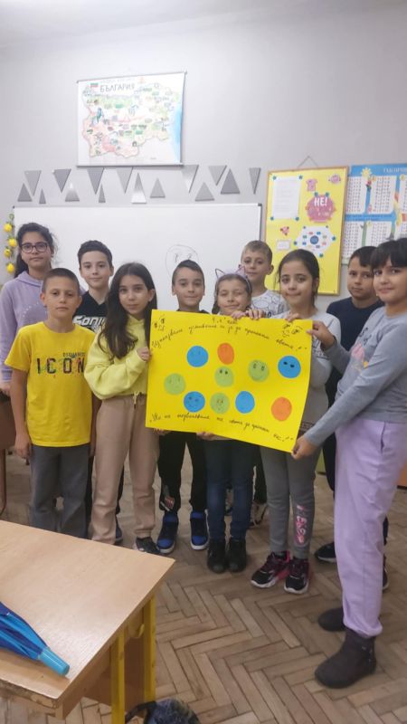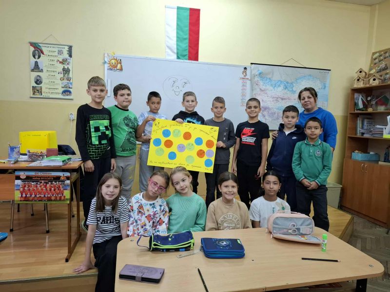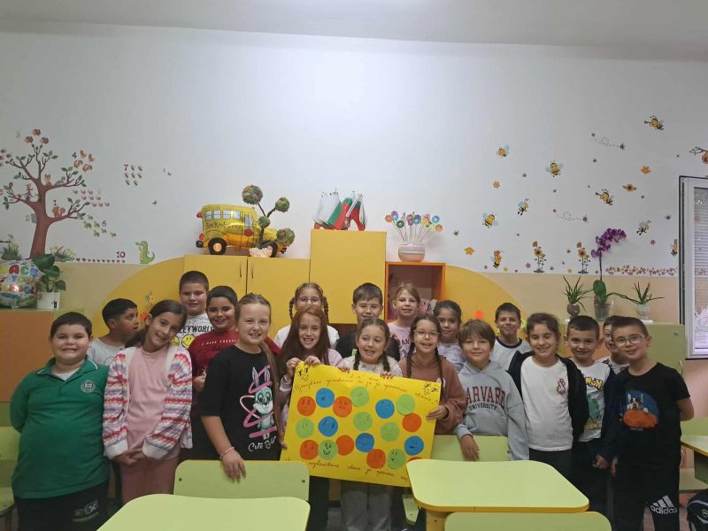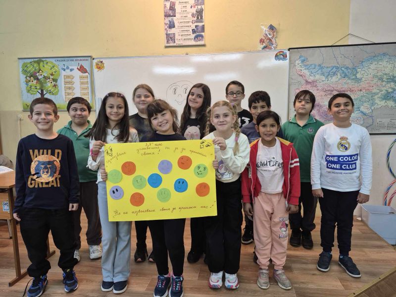 В нашето училище този ден се превърна в истински празник на доброто. С помощта на училищния психолог Деяна Михова и с подкрепата на класните ръководители, децата от 1.а, 2.а, 3.а, 3.б, 4.а и 4.б клас създадоха цветни и весели колажи с усмихнати човечета.