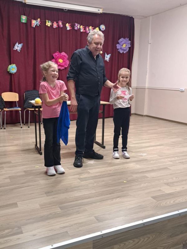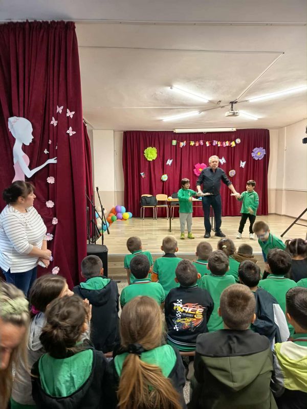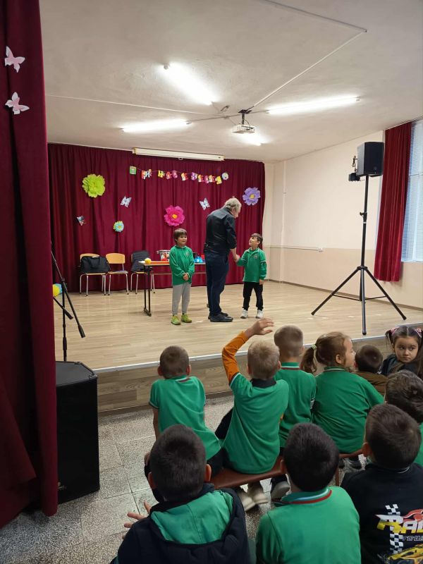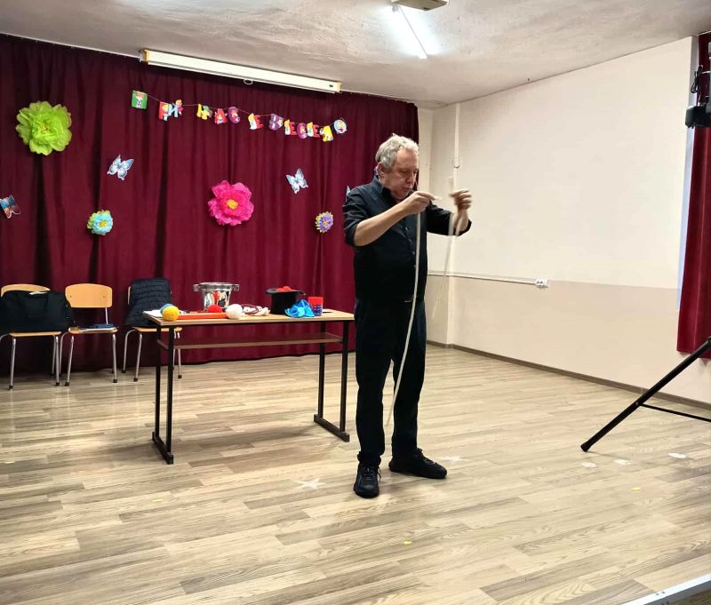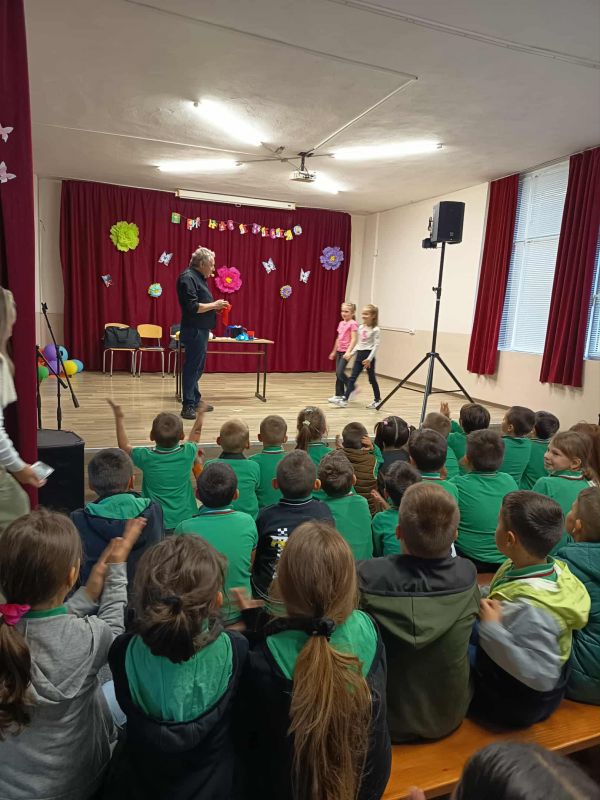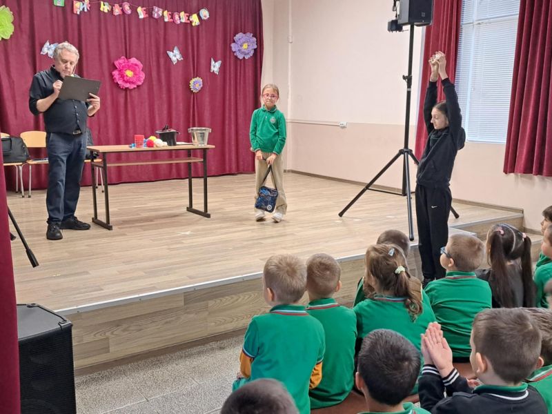 Познат от театралната сцена и телевизионния екран, Ненчо Илчев превърна училищната зала в сцена на чудеса. С лекота и обаяние той показа, че истинската магия не е само в картите и шапките, а в усмивките, доброто настроение и вярата, че всичко е възможно.