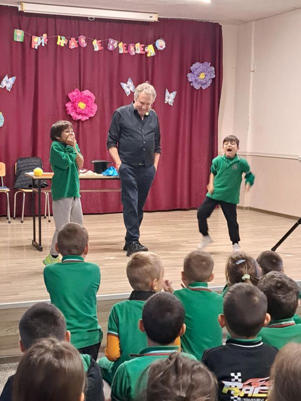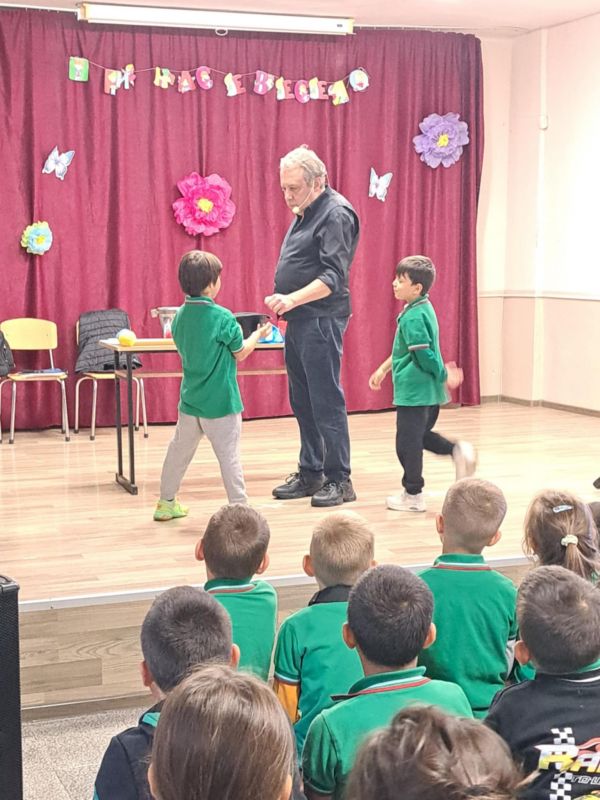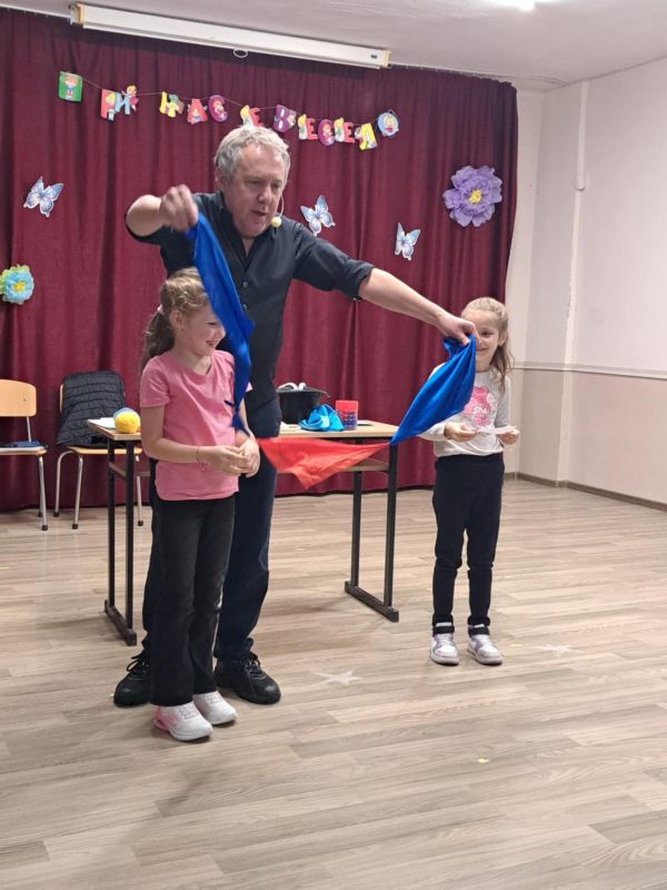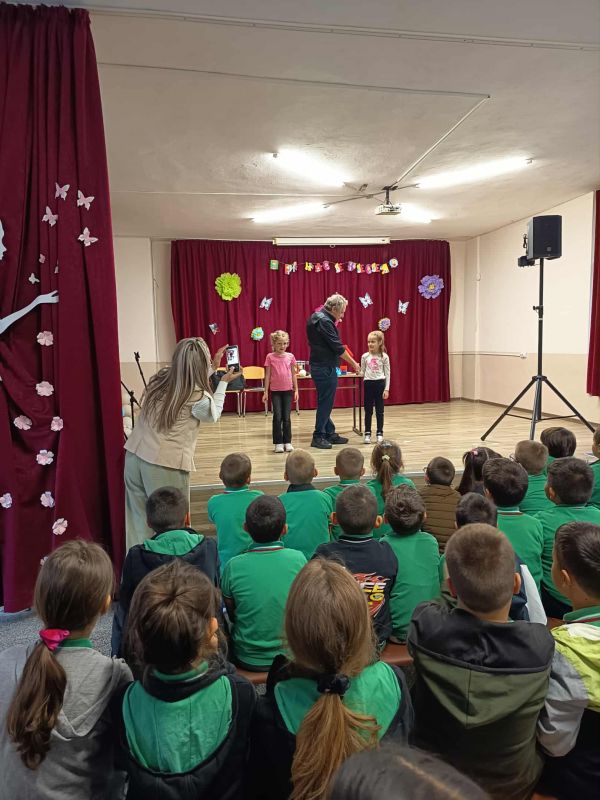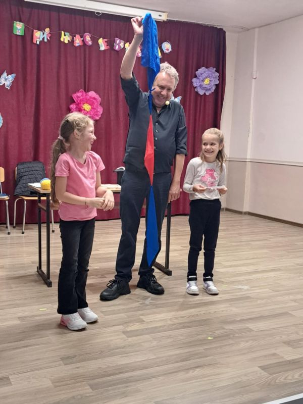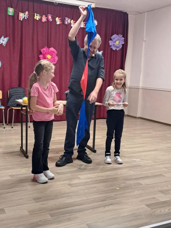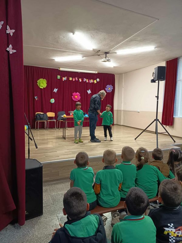 Познат от театралната сцена и телевизионния екран, Ненчо Илчев превърна училищната зала в сцена на чудеса. С лекота и обаяние той показа, че истинската магия не е само в картите и шапките, а в усмивките, доброто настроение и вярата, че всичко е възможно.