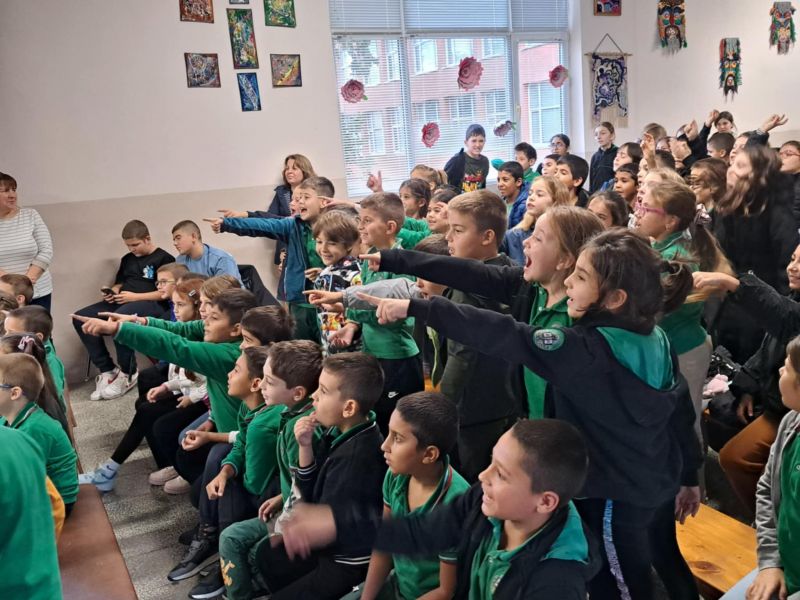 Учениците се включиха с огромен ентусиазъм – аплодисменти, смях и удивление изпълниха залата. Някои дори имаха възможността да станат негови помощници във фокусите и да усетят отблизо чара на сцената.