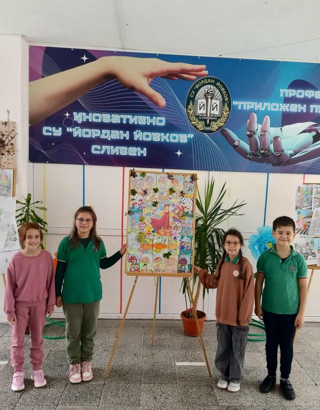 След като завършиха своите творби, малките художници ги подредиха на красиво табло, което превърна училищното фоайе в истинска галерия на есента.