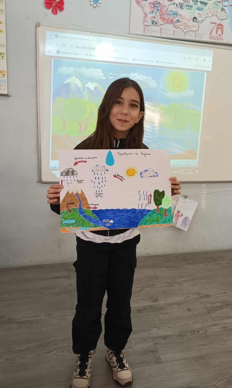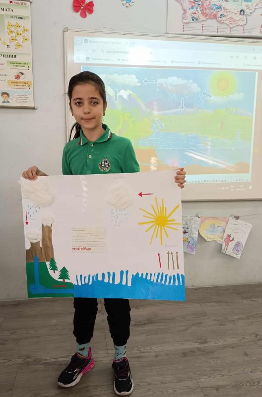 Освен това, всеки ученик написа кратък разказ от името на малка капчица, която разказва за своите приключения по време на дългото си пътешествие в кръговрата на водата. Така уроците оживяха, а наученото се превърна в лична история, изпълнена с въображение и емоции.