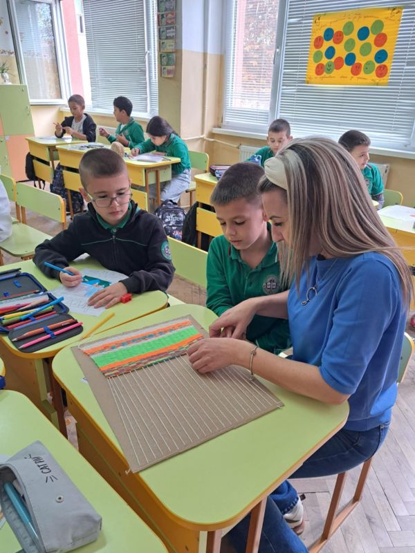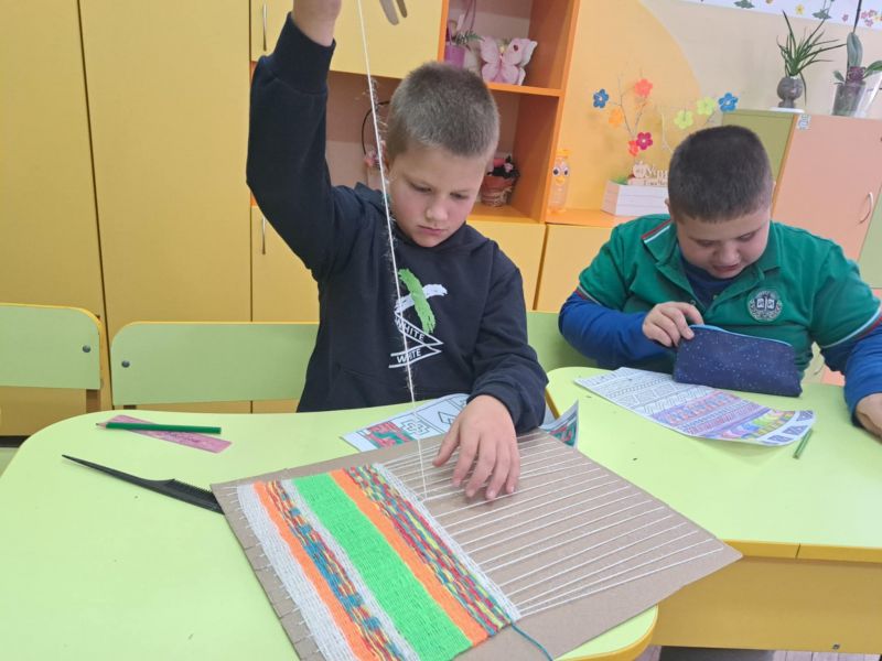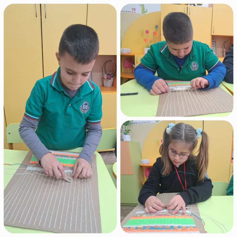 Учителите бяха изработили импровизиран стан, с който децата преплетоха цветни нишки и създадоха своя собствена черга – пъстра, весела и уникална, точно като тях самите. С ентусиазъм и любопитство те научиха как техните баби са тъкали с любов и търпение, превръщайки всяка нишка в разказ за дом, традиция и грижа.