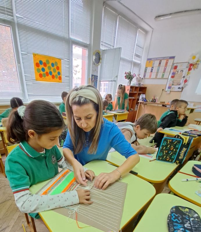 В ателието „Бабината черга“ учениците, заедно със своите учителки Таня Чотова и Мария Монева, се запознаха със старинния стан – онзи магичен уред, на който бабите ни са тъкали топлина, уют и история.
