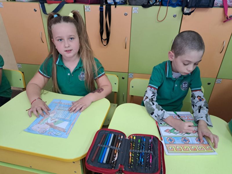 Във връзка с 45-годишния юбилей на училището, днес класната стая на 2.А се превърна в работилница на спомени, цветове и творчество.