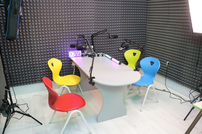 Професионално студио за подкасти и новини, в което учениците ще могат да създават свои предавания, интервюта, репортажи и аудио проекти, развивайки медийна грамотност и творческо самочувствие.