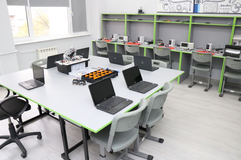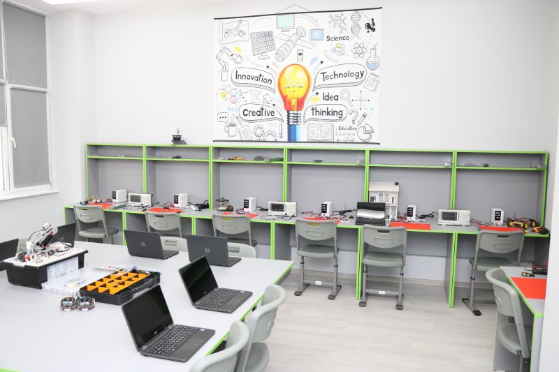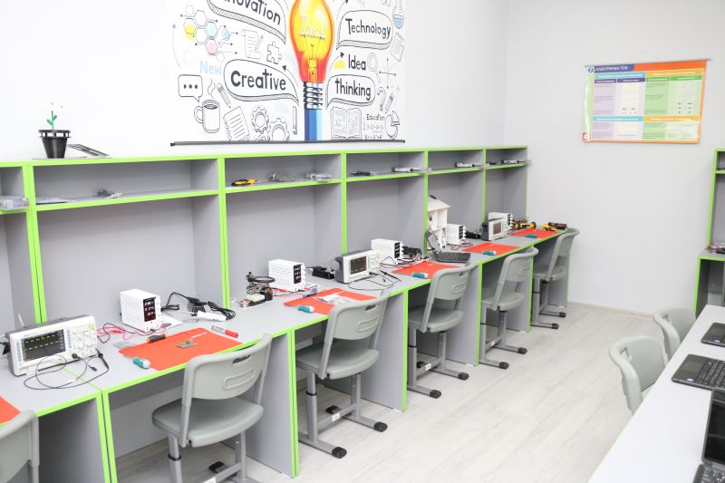 • лаборатория по роботика, разполагаща с последно поколение оборудване и инструменти, необходими за създаване на иновативни проекти, като осцилоскопи, лабораторни захранвания, поялници, микроконтролери, разширителни платки, както и изключително богат набор от сензори, актуатори и други конструктивни елементи, които могат да задоволят и най-амбициозните идеи на учениците, за да постигнат своите иновации;